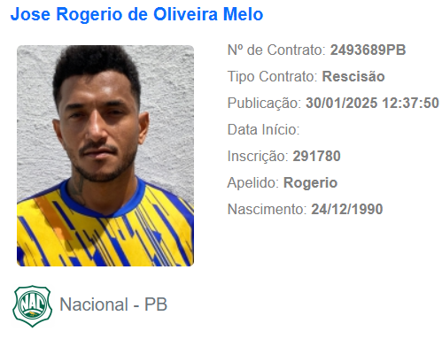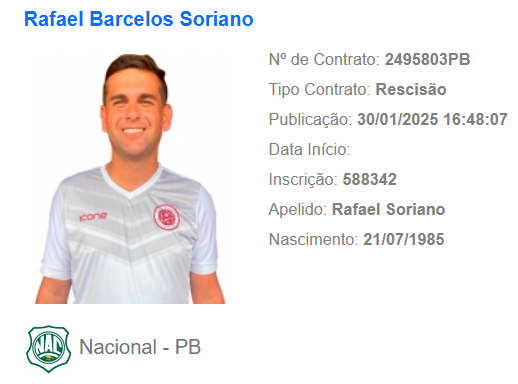 Os nomes de Rafael Soriano e Rogério já foram publicados no boletim informativo diário da Confederação Brasileira de Futebol, oficializando as saídas dos dois profissionais do Nacional de Patos.