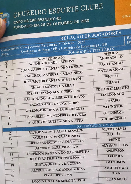 Confiança de Sapé 1×0 Cruzeiro de Itaporanga começam a decidir uma vaga do acesso para a Primeira Divisão do Campeonato Paraibano de 2026. Bicho Papão e Raposa do Vale entram em campo neste domingo (28), às 15h, no estádio Toca do Papão, em Sapé.