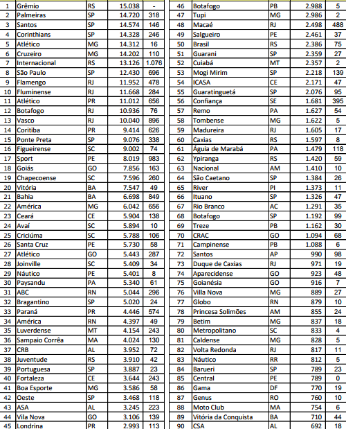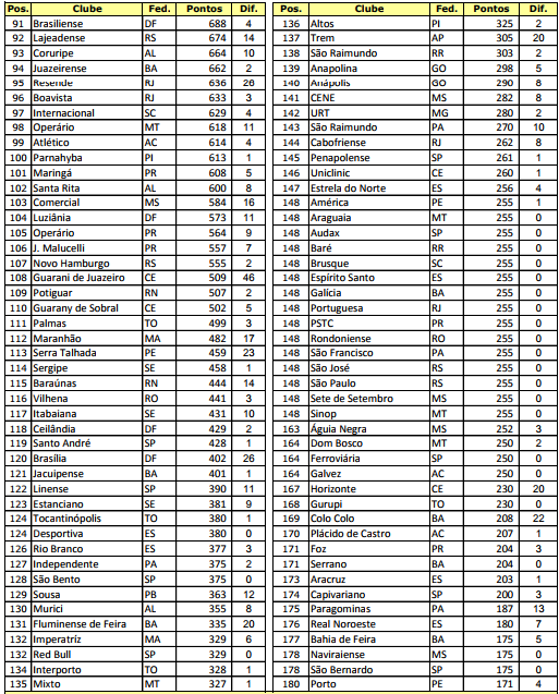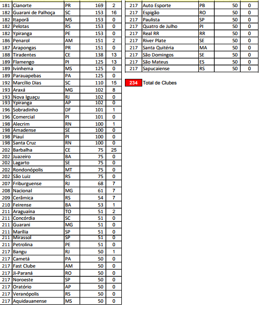 O ranking dos times brasileiros estabelecido deste de dezembro do ano passado indica a colocação para os grupos da Copa do Nordeste de 2018. Os clubes paraibanos estão posicionados da seguinte maneira: Botafogo da Paraíba, Treze e Campinense de Campina Grande, Sousa, Auto Esporte da Paraíba.