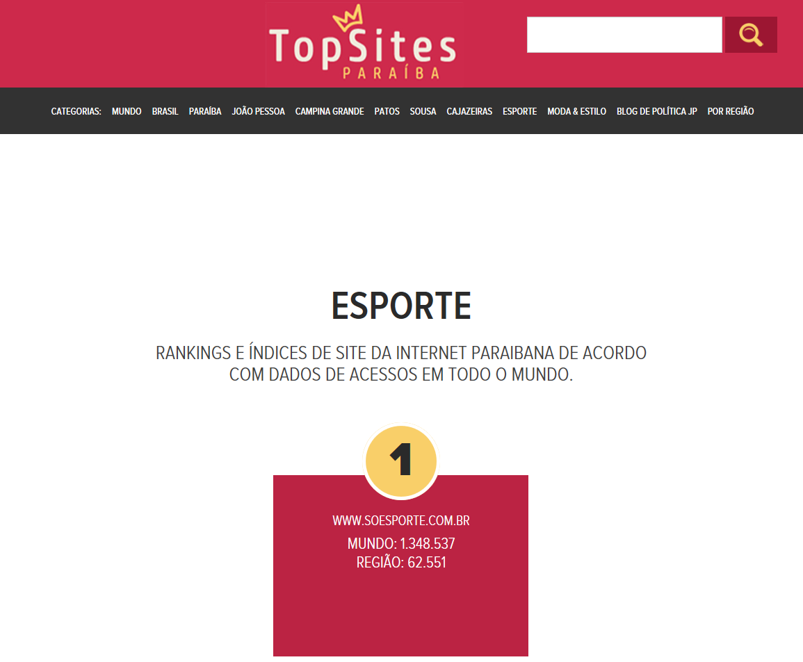 Só Esporte é Líder de acordo com o Rankings e índices de site da internet paraibana de acordo com dados de acessos em todo o mundo.