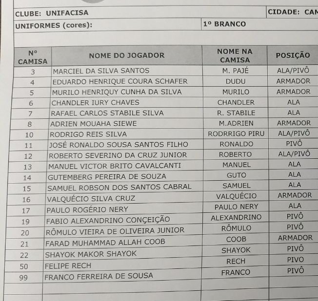 Comandado por Dudu Schafer e tendo na preparação física Washington Reis e Hebert Schafer, o elenco da Unifacisa ja conta com 20 atletas e ainda deve contratar mais um armador e um pivô do basquete norte-americano.