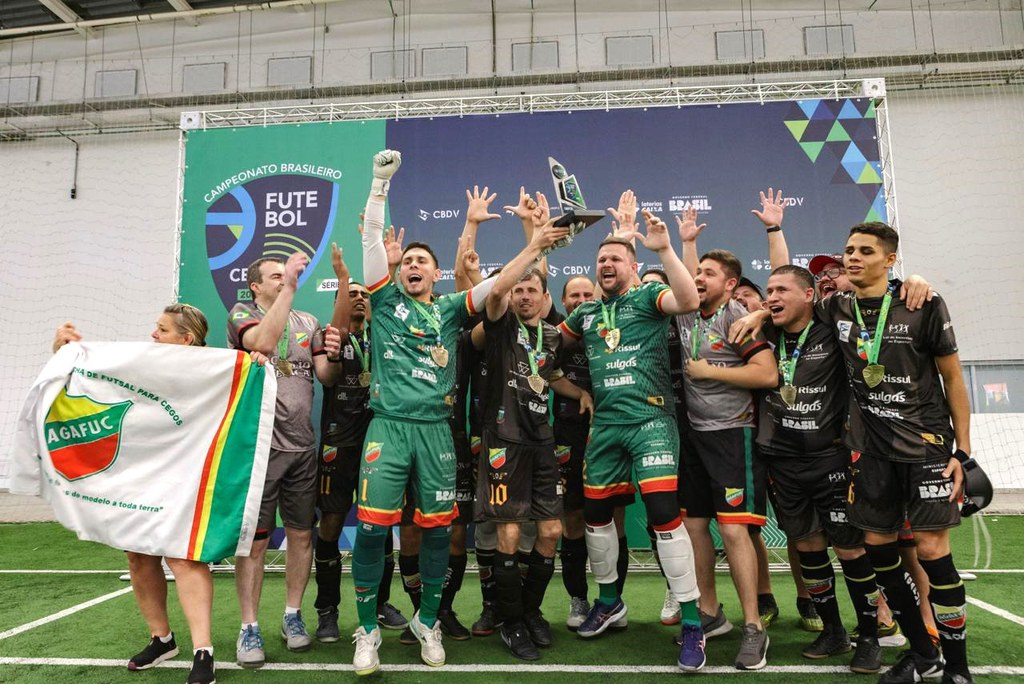 Agafuc (Associação Gaúcha de Futsal para Cegos) venceu o Corinthians-SP por 2 a 1 nos pênaltis, neste domingo (13), em São Paulo, pela final do Campeonato Brasileiro – Série A e conquistou seu sétimo título da modalidade. O jogo, que contou com transmissão ao vivo no YouTube do CPB (Comitê Paralímpico Brasileiro) e foi disputado no Centro de Treinamento Paralímpico, terminou empatado em 0 a 0 no tempo regulamentar. Agora, os gaúchos se igualam ao ICB (Instituto de Cegos da Bahia) como os maiores vencedores da história – o futcegos passou a ser administrado pela CBDV (Confederação Brasileira de Desportos de Deficientes Visuais) em 2011, mas o campeonato nacional já era realizado desde 1986.