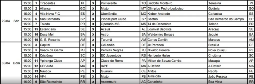 29/04 sáb 16:00 Sampaio Corrêa MA x Mirassol SP, Castelão São Luís MA