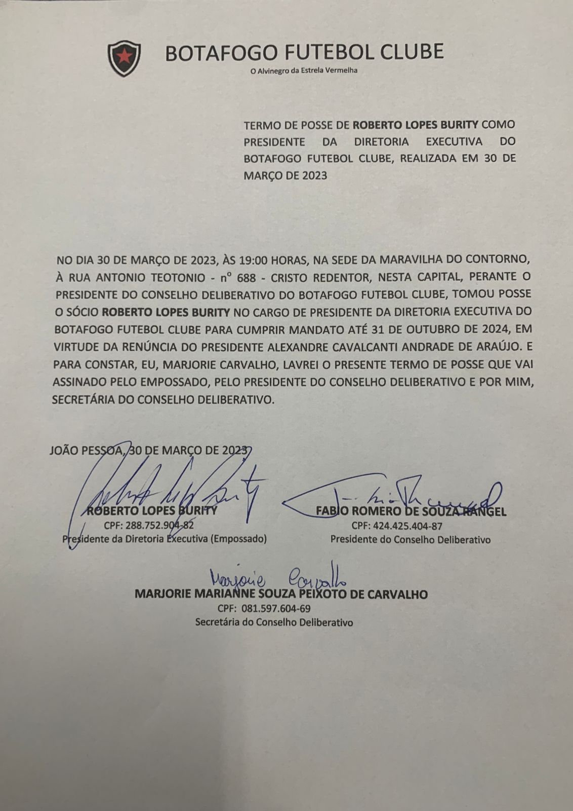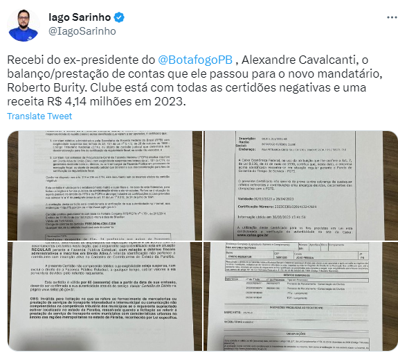 A informação do cofre gordo por parte do Botafogo-PB foi divulgada nesta quinta-feira (30) pelo jornalista Iago Sarinho, diretor da equipe esportiva da Rádio Tabajara de João Pessoa. Sarinho que também é setorista do clube botafoguense afirmou ter recebido a prestação de conta do próprio Alexandre Cavalcanti, que deixou o Botafogo na quarta-feira (29).