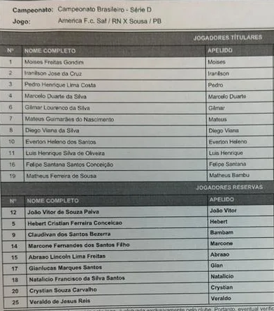 Quarto Árbitro- José Magno Teixeira do Nascimento RN