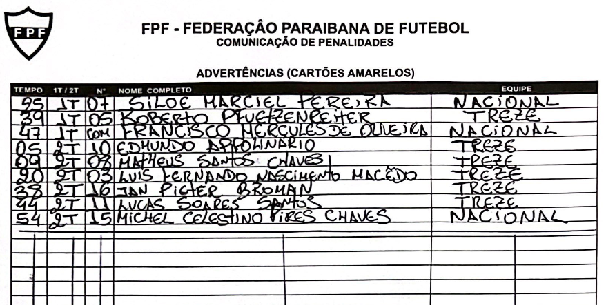 Neste jogo ele amarelou apenas dois jogadores do Nacional de Patos. Veja a relação de punições de acordo com a súmula…