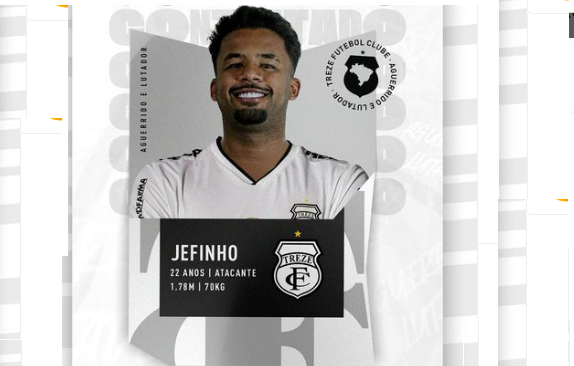 Tem reforço no ataque alvinegro. Atacante Jefinho é mais um anúncio do Galo para a disputa do Campeonato Brasileiro Série D. Carioca, Jefinho tem 22 anos e é formado nas divisões de base do Fluminense-RJ. Profissionalmente, Jefinho atuou pelo B SAD-POR e estava no Boa Vista-RJ.