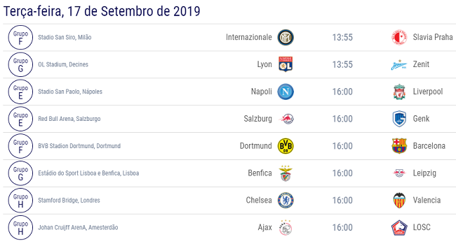 Confira todos os jogos da primeira rodada da Champions League: