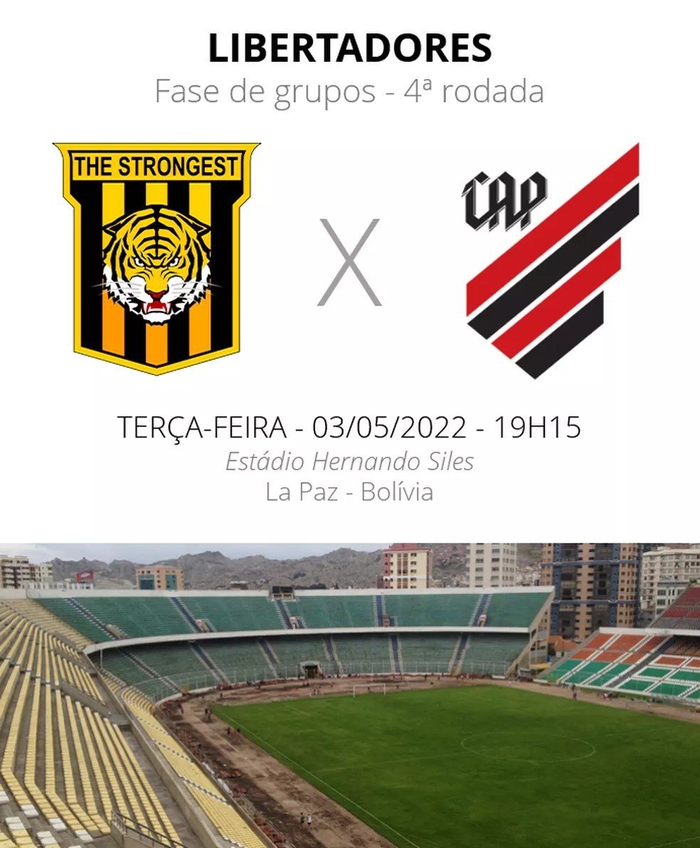 O Athletico visita o The Strongest nesta terça-feira, às 19h15, no estádio Hernando Siles, pela quarta rodada da Libertadores. O Furacão é o vice-líder do grupo B, com quatro pontos. O Libertad lidera, com sete. Caracas e The Strongest estão atrás, com dois. O ge acompanha a partida em Tempo Real.