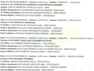 Os últimos quatro jogos da primeira fase do Campeonato Paraibano da Segunda Divisão de 2023 serão disputados neste domingo (1), todos começando às 16h, como determina o regulamento, para evitar que algum time seja beneficiado.