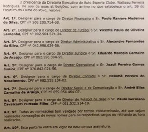 Depois de definir os nomes dos novos diretores da diretoria executiva, o Auto Esporte trabalha a relação da nova comissão técnica, principalmente, o comandante técnico do elenco profissional que vai disputar as competições programadas para a temporada de 2016.
