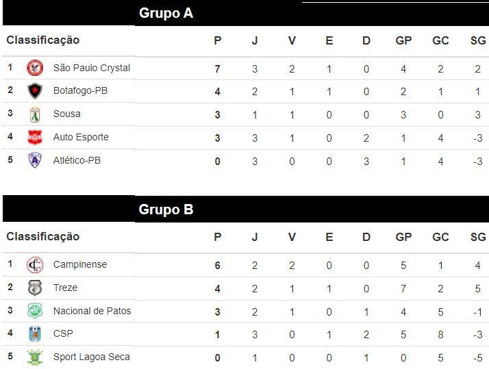 5 Atlético-PB 0 3 0 0 3 1 4 -3