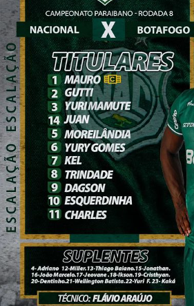 A partida que envolve os times de Nacional de Patos e Botafogo-PB tem como árbitro Afro Rocha. Os assistentes são Paulo Ricardo Alves e Marcelo Paulino de Oliveira. O quarto árbitro é Bruno Monteiro Cunha. Gols – Renatinho e Miller