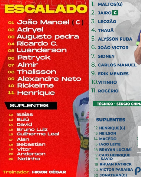 O encontro entre as equipes de Auto Esporte e Campinense terá como árbitro Romário Medeiros Soares. Ele conta com apoio dos assistentes Flávia Renally Costa e Luan Vieira Machado. O árbitro reserva é José de Arimatéia. Gol – Guilherme Escuro (Campinense)
