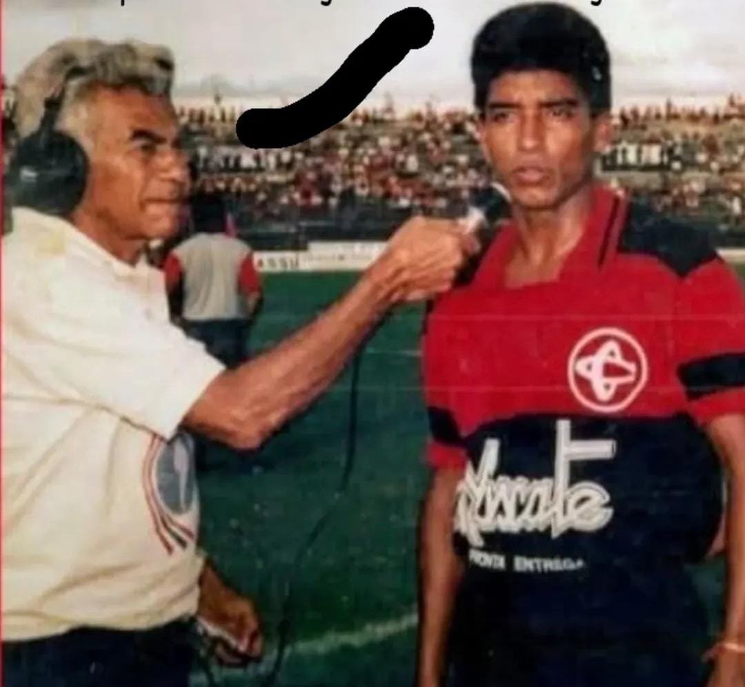 O repórter Lulinha Rodrigues, im memoriam, em entrevista com o atacante Ney baiano, que se destacou no futebol paraibano, com passagem pelo Campinense e Botafogo-PB.