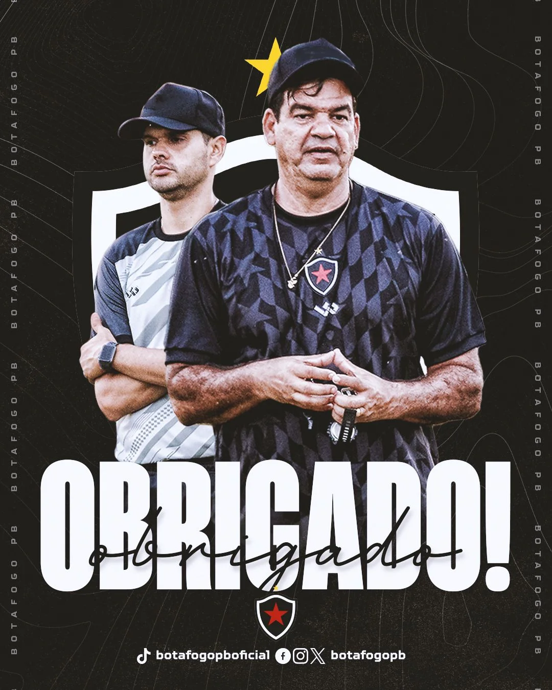 “O Botafogo Futebol Clube informa que Moacir Júnior não é mais técnico da equipe principal. Além dele, o auxiliar técnico Alex Nascif também deixa o clube. A direção agradece aos profissionais pelos serviços prestados e deseja sucesso na continuidade de suas carreiras”, divulgou a assessoria do Botafogo-PB.