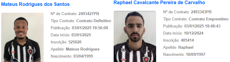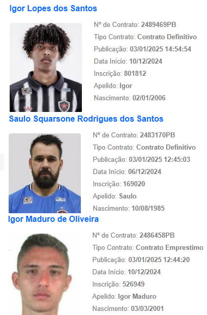 Foram regularizados nesta sexta-feira (3), Igor dos Santos, Igor Maduro e o goleiro Saulo dos Santos. Os nomes dos três jogadores estão publicados no boletim informativo da Confederação Brasileira de Futebol (CBF).