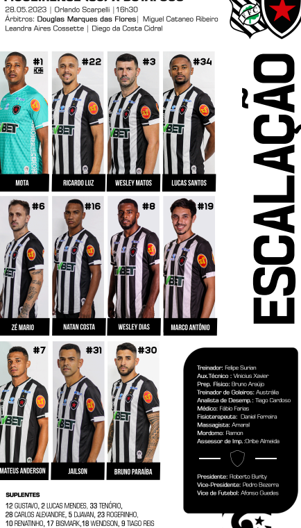 O atleta Vitinho se encontra no Departamento Médico e por isso não foi relacionado para a partida, mesma condição do atleta Willian Kaefer