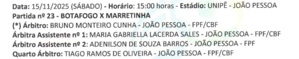O Botafogo-PB entra em campo com a vantagem de poder até perder pelo placar mínimo para o Marretinha, neste sábado (15), às 15h, no campo da Unipê. Os dois times fazem a partida de volta, pela fase semifinal do Campeonato Paraibano de Futebol Feminino Adulto de 2025.