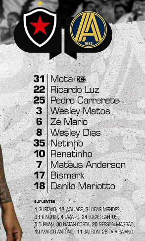 Os atletas Bruno Mota e Rogerinho se encontram no Departamento Médico e por isso não foram relacionados para a partida, mesma condição do atleta Willian Kaefer