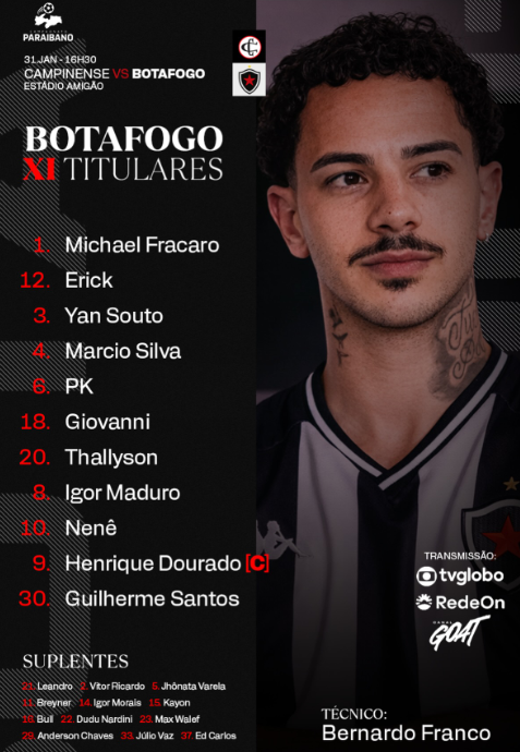 Botafogo-PB 0x4 Campinense, no Amigão, pela quinta rodada do Campeonato Paraibano na Primeira Divisão de 2026.