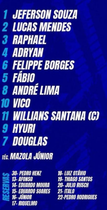 - Wendel Lomar (zagueiro) – Tendinopatia do tendão patelar direito;