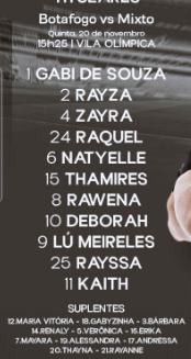 Mixto – Débora 1, Lu 1, Letícia 1, Tan Tan 1,