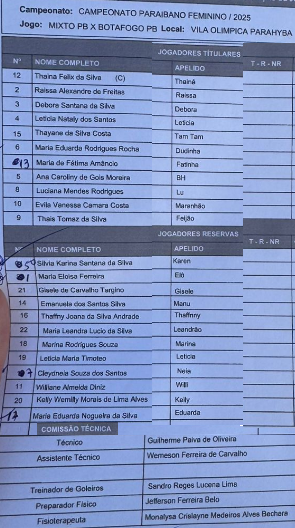 O título do Campeonato Paraibano de Futebol Feminino Adulto de 2025 foi decidido, nesta quinta-feira (20), às 15h25, reunido no jogo final as equipes de Botafogo-PB e Mixto. No tempo normal, o placar terminou em 1 a 1. O Mixto superou as botafoguenses nos pênaltis por 4 a 3.