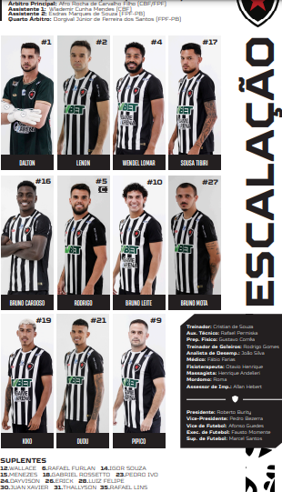 Botafogo: Dalton, Lenon (Erick), Sousa Tibiri (Menezes), Wendel Lomar e Bruno Cardoso; Rodrigo, Bruno Leite e Bruno Mota (Thallyson), Kiko (Dayvison), Dudu (Pedro Ivo) e Pipico.