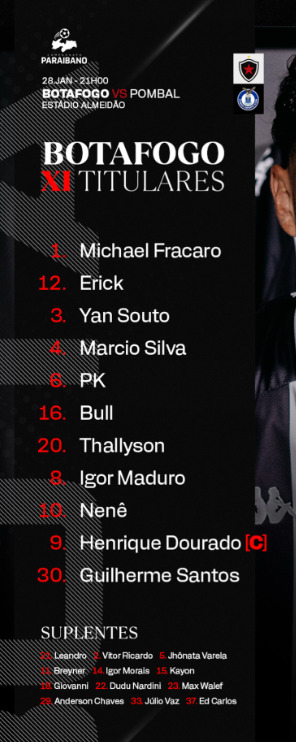 Botafogo-PB x Pombal, no estádio Almeidão, em João Pessoa, pela quarta rodada da primeira fase do Campeonato Paraibano da Primeira Divisão de 2026.