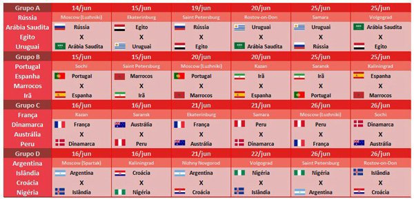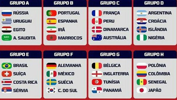 Confira como ficaram os grupos da Copa do Mundo da Rússia 2018: