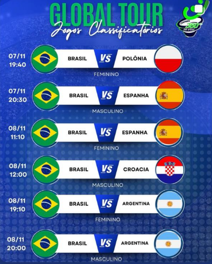 No primeiro dia do Mundial de Handebol de Praia, a seleção brasileira faz estreia contra a Polônia, às 19h40, com o feminino. Logo depois, às 20h30, será a vez do masculino encarar a Espanha. Outro destaque do evento fica por conta do clássico entre Brasil e Argentina nos dois naipes no sábado (8).