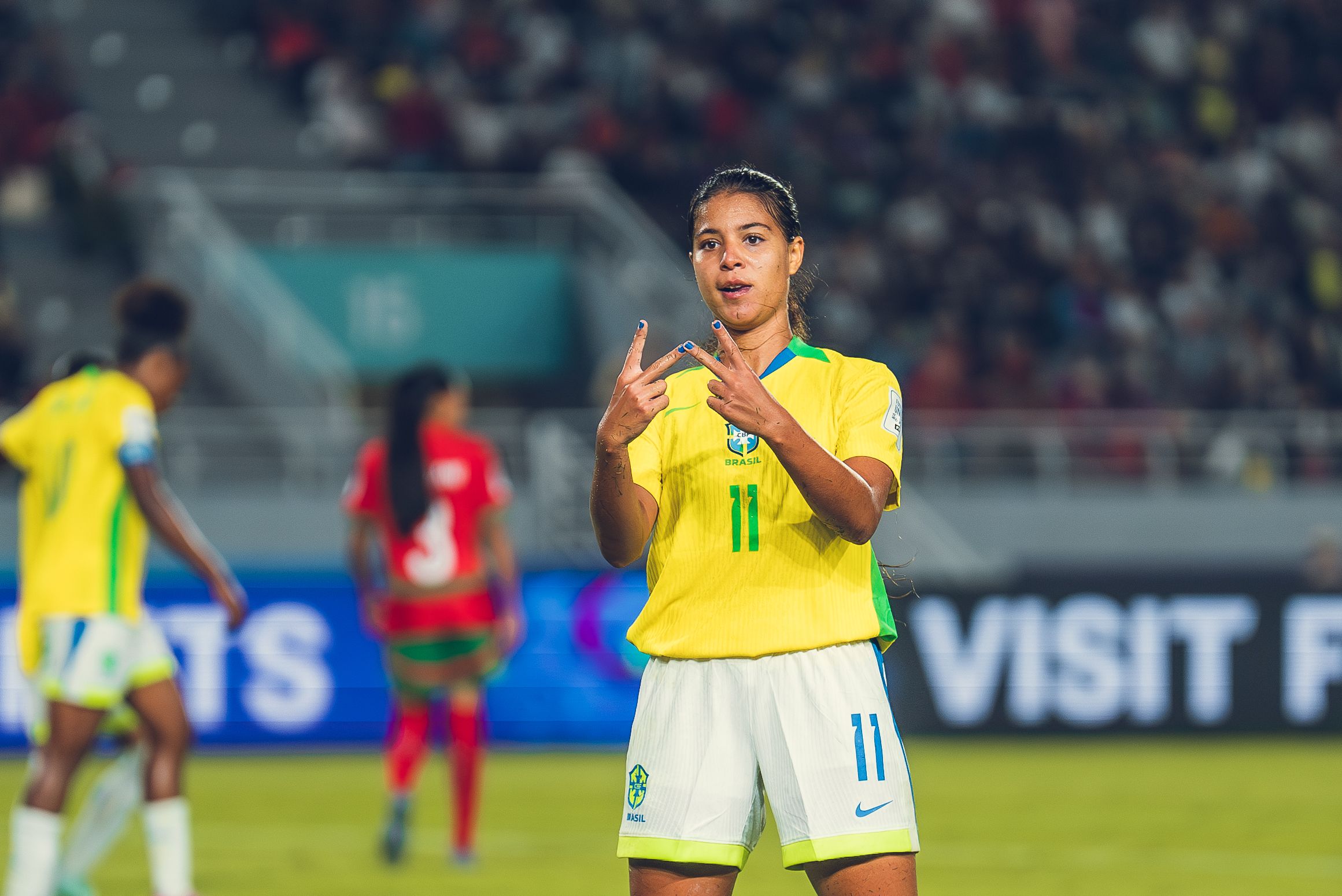 Evelin marca o primeiro gol da Copa do Mundo Feminina Sub-17 FIFA 2025Créditos: Fabio Souza/CBF