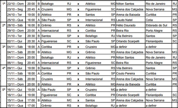 Clubes participantes: Atlético/MG, Atlético/PR, Botafogo, Coritiba, Cruzeiro, Figueirense, Grêmio, Internacional, Santos e São Paulo