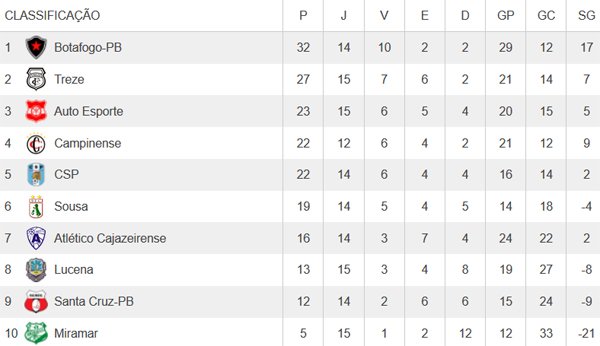 O soesporte mostra as duas classificações. Uma que indica o Auto Esporte com 20, na quinta colocação, sem os três pontos retirados pelos TJD/PB e outra que com o Auto Esporte na terceira colocação com 23 pontos.