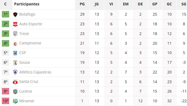 Campeonato Paraibano 2015 /primeira fase. CSP 1×2 Treze, no estádio Almeidão, em joão Pessoa; Botafogo 4×1 Atlético, no estádio Almeidão, em João Pessoa; Miramar 1×2 Auto, no CT Ivan Tomaz, em João Pessoa, Sousa 1×0 Santa Cruz, no Marizão, em Sousa; Campinense 2×1 Lucena, estádio Amigão, em Campina Grande.