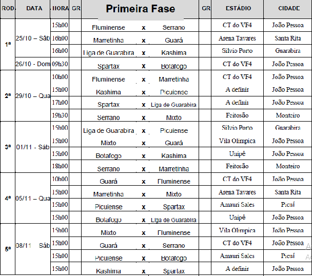 Grupo A: Mixto-PB, Fluminense, Marretinha, Guará e Serrano