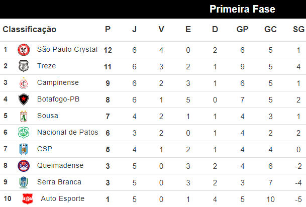A única surpresa foi a entrada do Botafogo-PB no G4, mas com oito pontos em seis jogos correndo o risco de ser superado nas próximas rodadas pelos seus concorrentes: Sousa, com sete pontos, Nacional de Patos com seis e CSP com cinco.
