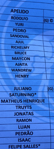 Rodrigues, Breno Santos, Eduardo, Ramon Baiano (c), Feliphe Gabriel, Ângelo, Rayanderson, Alan Pedro, Lucas Reis, Luan Santos, Maycon Rangel