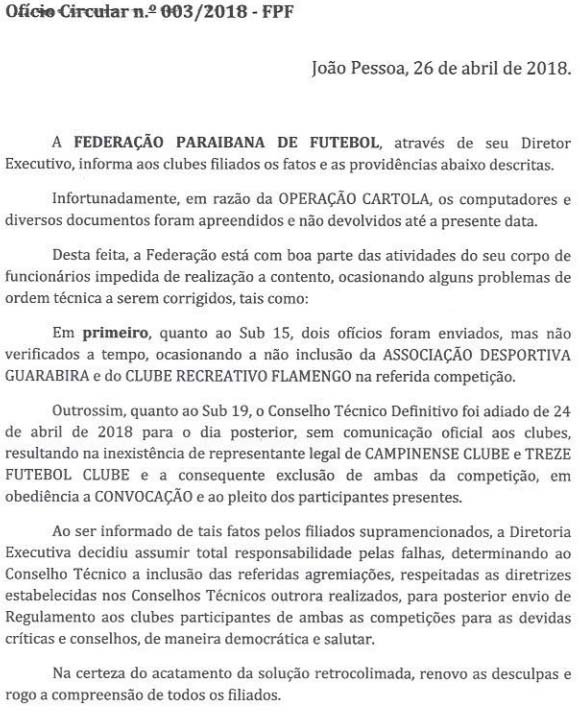 Campinense e Treze incluídos no Paraibano Sub 19. Os dois times de Campina Grande se junta aos 2o times que já estavam confirmados na competição. Os 22 times estão divididos em quatro grupos.
