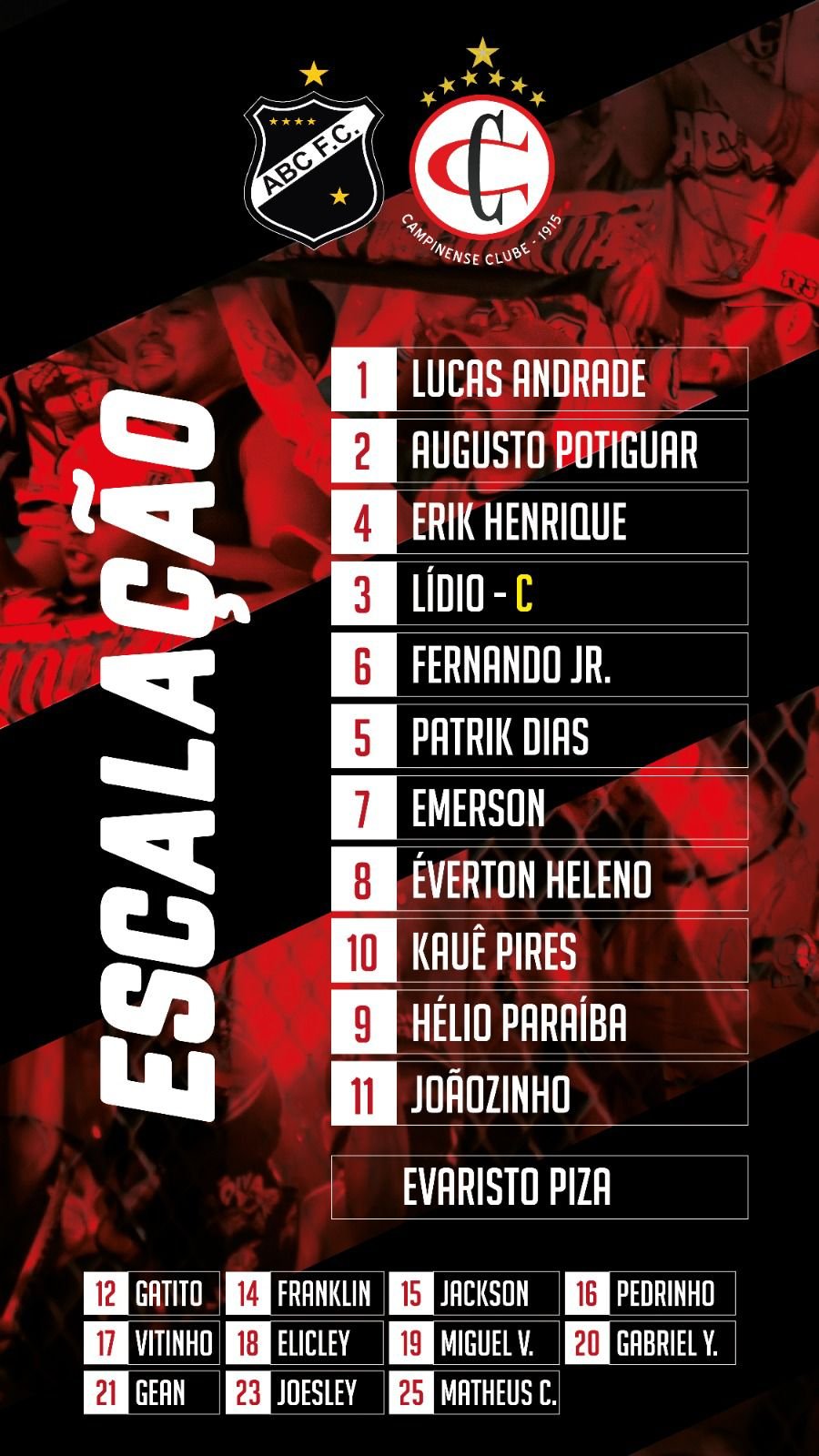 Campinense 0x1 ABC-RN, nesta terça-feira (30), no estádio Frasqueirão, às 19h30, em Natal-RN. O time do ABC-RN abriu o placar aos dois minutos do primeiro tempo, através de Jefferson Vinícius. Fim de jogo e vitória fo time da casa.