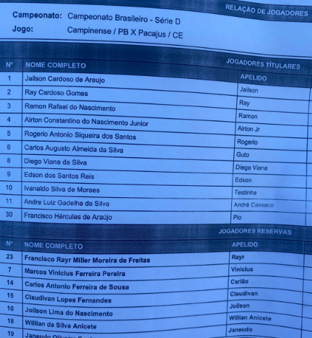 Quarto árbitro: Ruthyanna Camila Medeiros da Silva (PB)