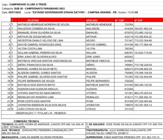 O clássico dos maiorais de Campina Grande voltando a ser disputado reunindo os times Sub 20. Final de jogo com vitória do Treze por 1 a 0 sobre Campinense, jogo neste domingo (9), no estádio Amigão, às 15h, pelo Campeonato Paraibano.