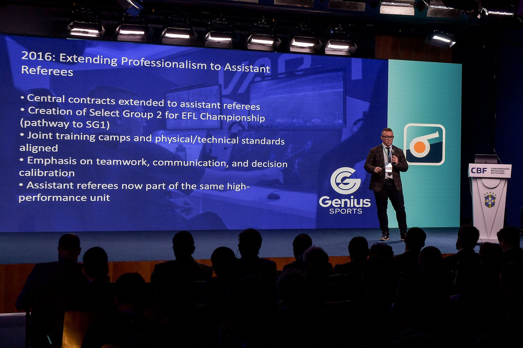Harry Lennard, ex-árbitro da Premier League, foi um dos palestrantes convidados e falou sobre o caminho de profissionalização da arbitragem na InglaterraCréditos: Staff Images / CBF