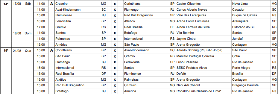 Nesta terça-feira (13), a diretoria de competições da CBF divulgou a tabela detalhada atualizada da primeira fase do Brasileirão Feminino A1. A competição retorna no sábado (17).