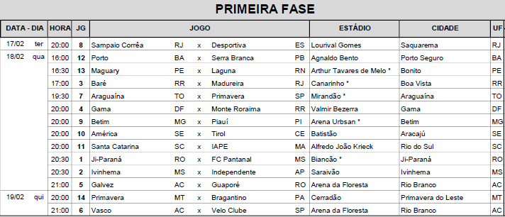 A CBF divulga tabela e Serra Branca quarta-feira na Bahia contra o Ponto, no estádio Agnaldo Bento, em Porto Seguro-BA. A Confederação Brasileira de Futebol (CBF) publica na tarde desta segunda-feira (9) a tabela detalhada da primeira fase da Copa Betano do Brasil 2026, que começará no dia 17 de fevereiro.