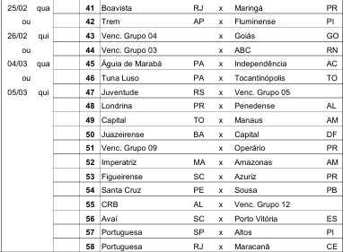 Em sua edição mais democrática da história, com 126 clubes participantes, a competição será aberta com o jogo entre Sampaio Corrêa-RJ e Desportiva-ES, no Lourival Gomes, em Saquarema (RJ).
