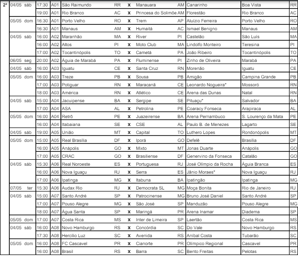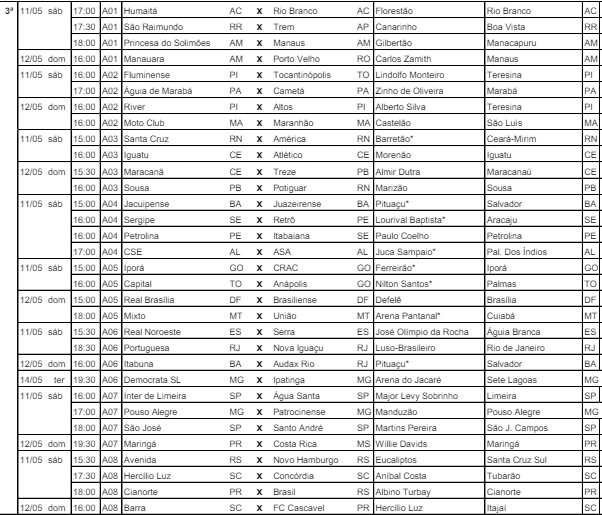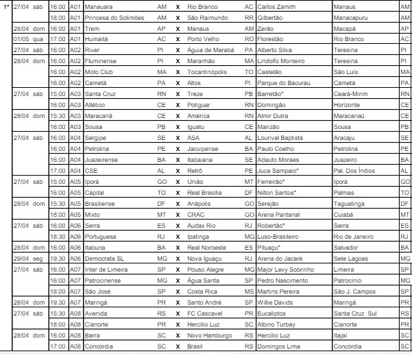 A diretoria de Competições da CBF divulgou, nesta segunda-feira (22), a tabela detalhada até a rodada 7 da Série D do Campeonato Brasileiro. A competição só começa no dia 27. Os dois representantes da Paraíba, Treze e Sousa jogam no fim de semana.