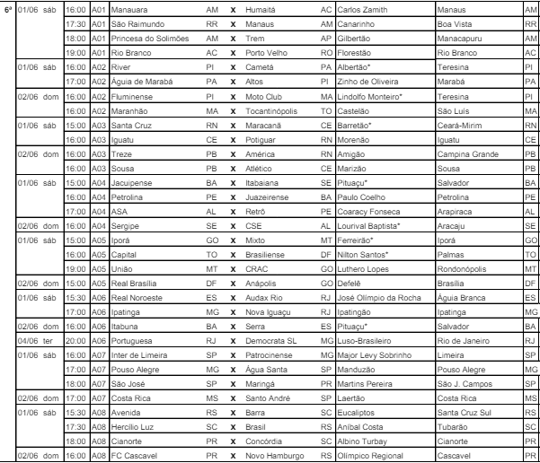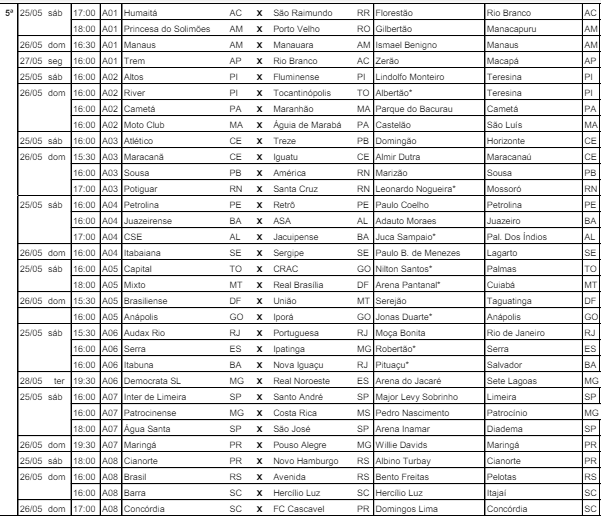 O documento contém informações das datas, horários e locais das partidas.