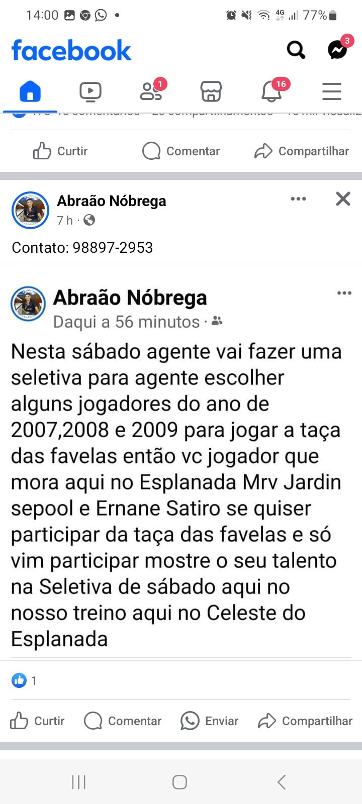 O objetivo é descobrir novos valores para montagem do elenco visando as próximas competições oficiais do Estado, entre as quais a Taça das Favelas . Veja nota divulgada no Facebook do clube…
